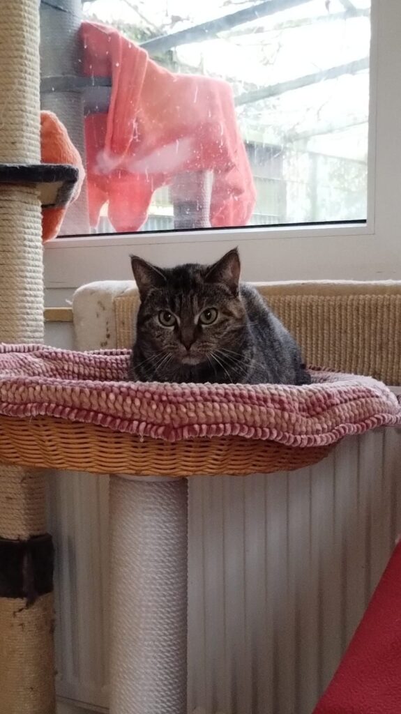 Marie, ca. 3 Jahre alt, ist eine noch schüchterne, misstrauische Katzendame, die gemeinsam mit ihren beiden Kitten zu uns gekommen ist. Die vergangenen Monate waren für sie sicherlich nicht leicht. Menschen begegnete sie zunächst mit großer Vorsicht und hielt lieber Abstand. Doch hinter ihrer Zurückhaltung steckt eine liebevolle Mama, die ihre Kleinen fürsorglich großgezogen hat und langsam beginnt den Menschen zu vertrauen.