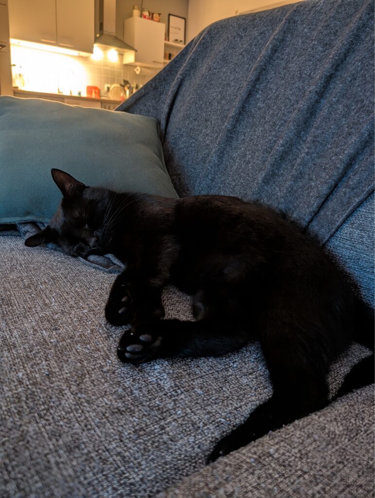 Leider humpelt Paul noch immer ein wenig. Uns fällt es durch die Gewohnheit nicht mehr ganz so stark auf, aber wir haben den Eindruck, dass es sich bereits etwas gebessert hat. Vielleicht haben ihm die drei Monate ohne das Jagen hinter anderen Katzen ganz gutgetan.